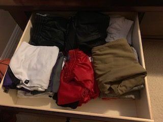 When de-cluttering, a key ingredient to stick with it and not feel overwhelmed, is to gain momentum. An area that is easy to toss things and gain that momentum is your closet (and second closet) and dressers. We, as consumers, felt compelled enough to purchase all these clothing items (shirts, pants, skirts, jeans, sweaters, etc) because advertisements, culture, our friends influenced us to the point where we felt we needed those items to fit in/be happy/be popular/to impress/insert whatever you want here. Once we purchased the item, we put that item in our closets and sometimes we wear the new item(s), but most of the time we kept the tag on it or wore it once never to be worn again. As time passed, we fell back into our routine and wore our “go to” clothing items because we knew we felt confident/comfortable/complete in those “go to” clothing items. We continue in this cycle to buy new apparel hoping something will change until our closets are jammed packed with apparel we do not wear. It happens to everybody.